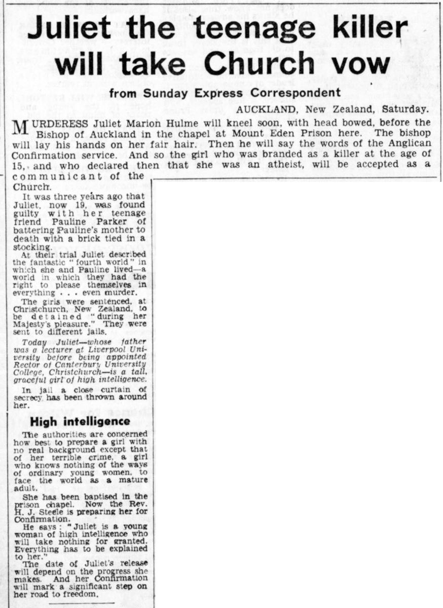 In October 1957 Juliet has been accepted as a communicant of the Anglican church, after a ceremony in the Mount Eden Prison chapel. See article for more.