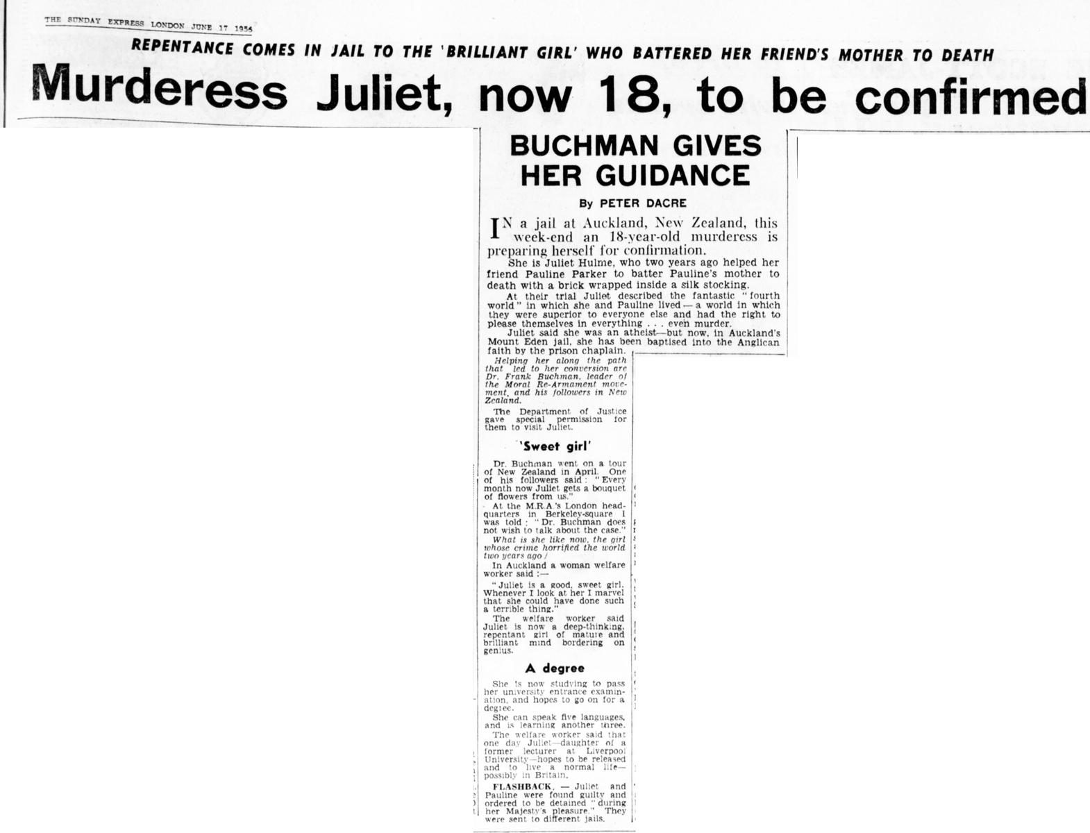On Tuesday June 22, 1954 Juliet actively helped Pauline Parker kill her mother Honorah Parker, in Victoria Park.