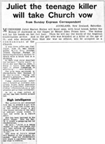 In October 1957 Juliet has been accepted as a communicant of the Anglican church, after a ceremony in the Mount Eden Prison chapel. See article for more.